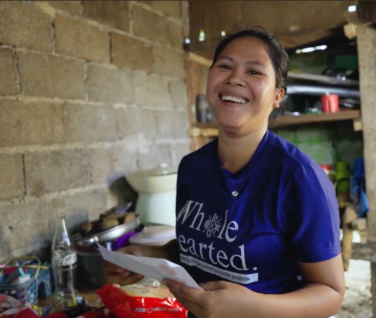 “I worked hard to build our house,” she said. “In a snap, in one typhoon, destroyed.” Their food, clothes, and belongings—gone. “We really need food bags and beddings.”